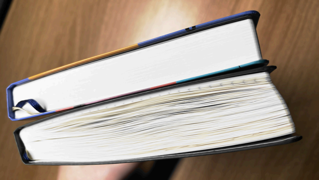 ひたすら短めの文字を書いてるだけなのできれいに使えてるよな、と思っていましたが、新品と比べると結構くたびれてる。あと今年の手帳は開き癖がついてて、自重ではきれいに閉じなくなっちゃってる(写真では手で押さえています)