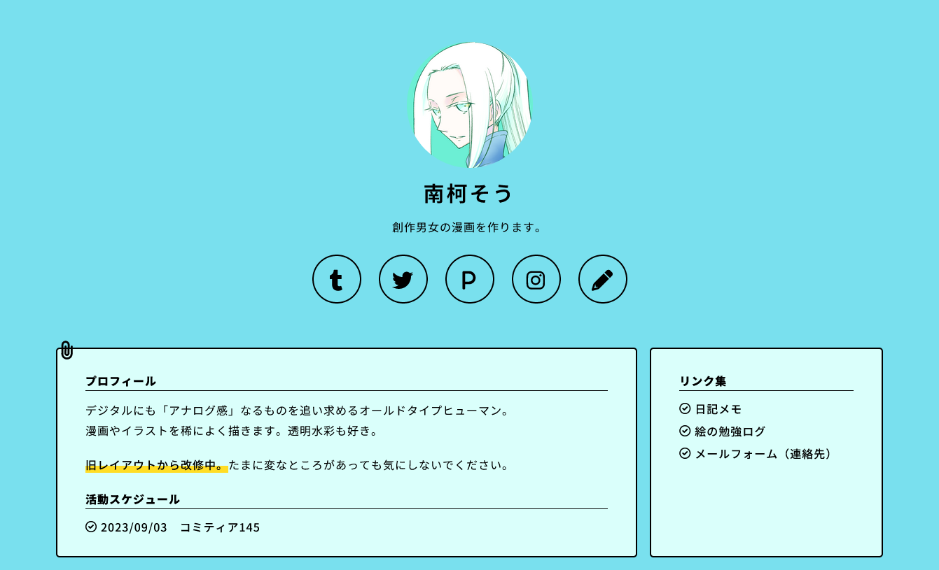 仲村=普段使いの名前。南柯そう=オリジナル創作の名前。